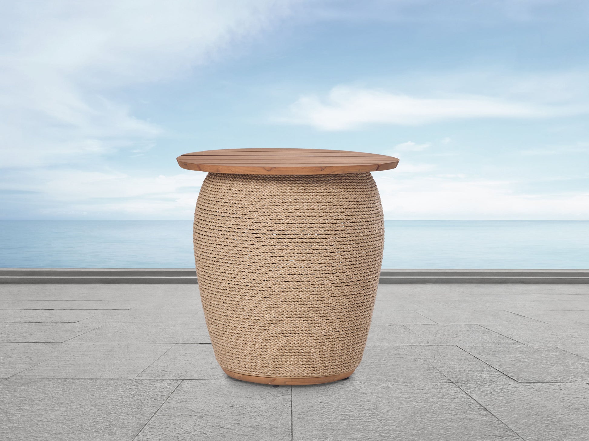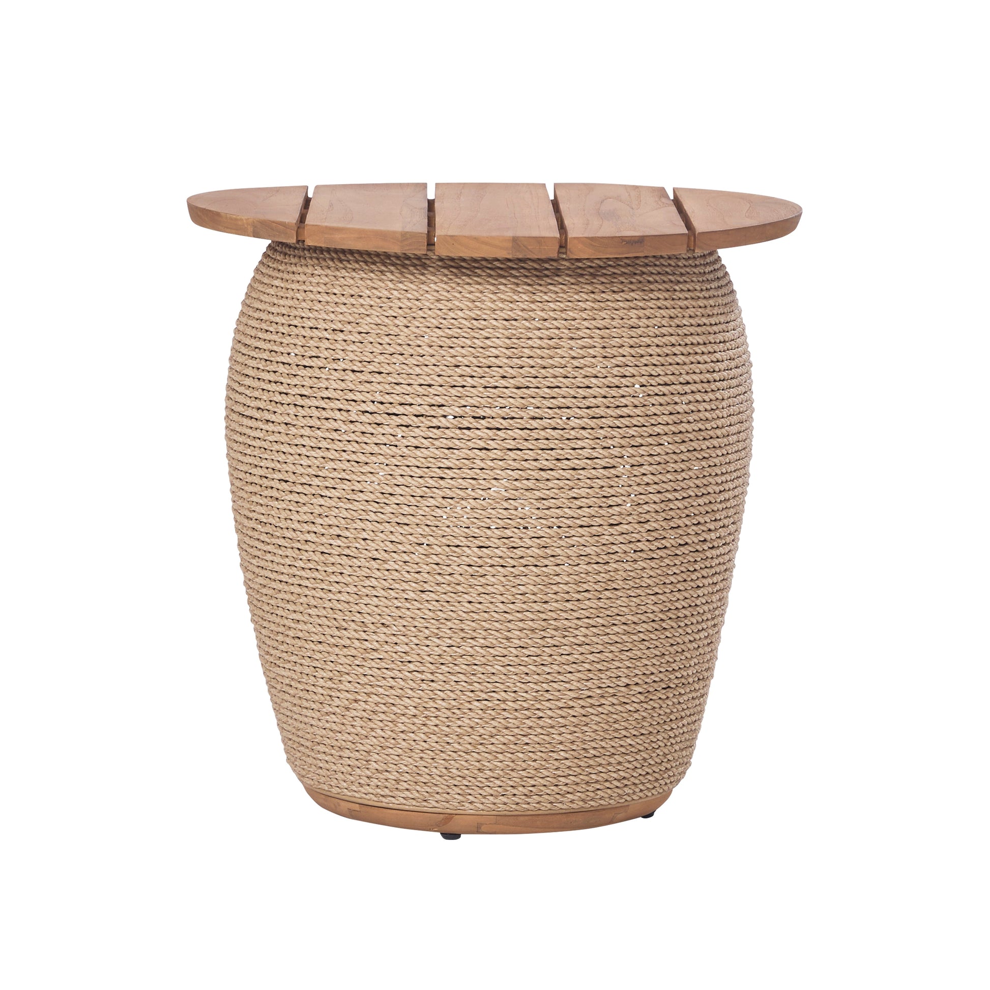 Table d'appoint de rangement d'extérieur en teck et corde de Bali