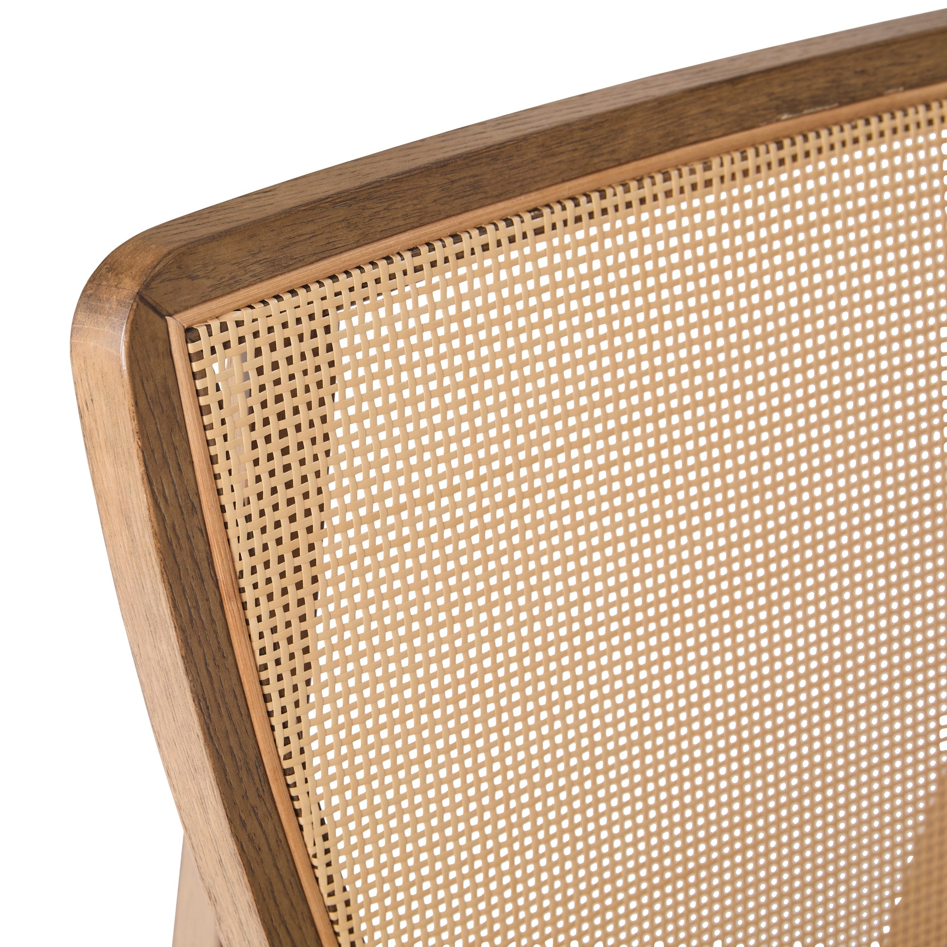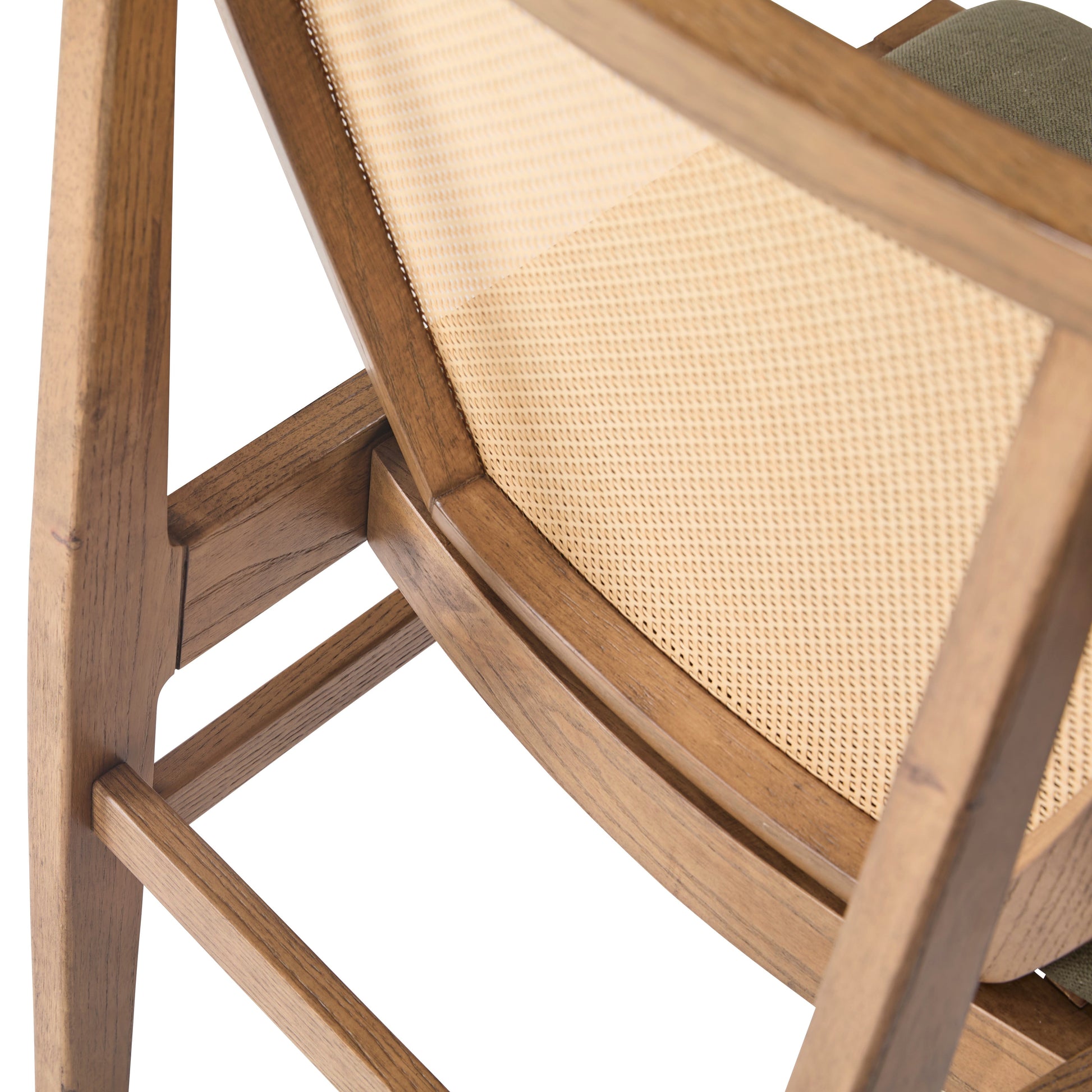 La chaise de salle à manger Prague associe des matériaux variés à une silhouette raffinée, mêlant simplicité moderne et chaleur traditionnelle. Sa structure en bois sculpté offre une base architecturale épurée, tandis que le dossier en rotin apporte texture et une touche d'élégance intemporelle. L'assise rembourrée assure un confort moelleux et un équilibre contemporain, créant ainsi une harmonie entre structure, ton et matière.