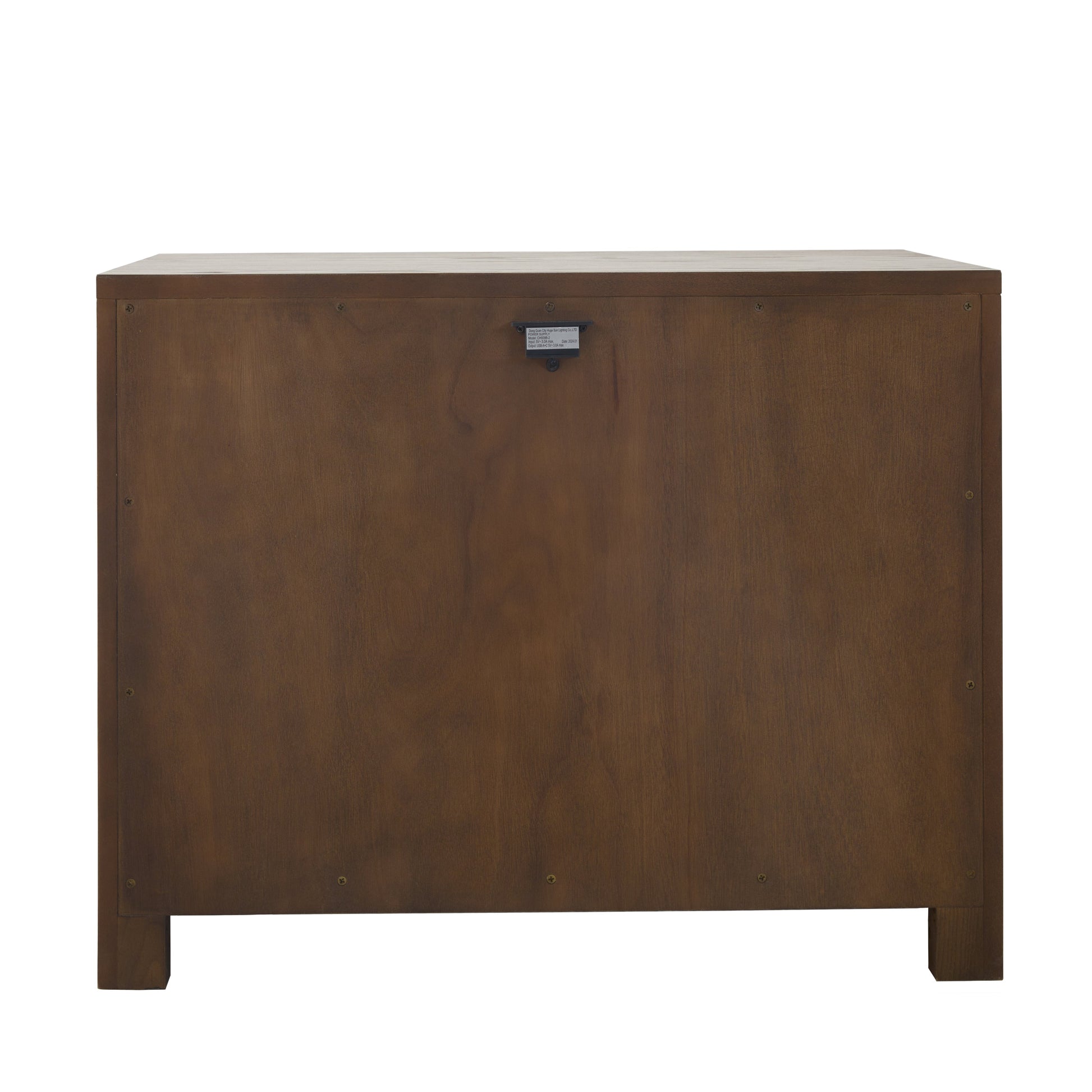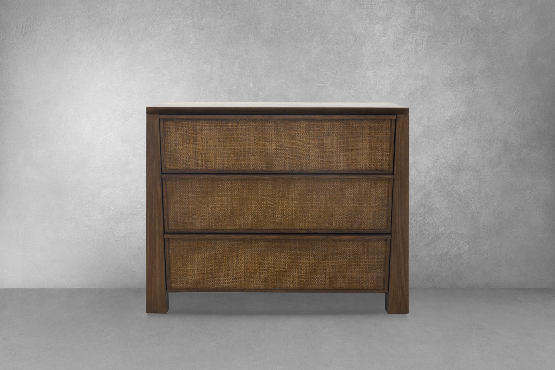 Table de chevet JoJo Fletcher Sawyer en chêne et tissu d'herbe, 3 tiroirs, marron