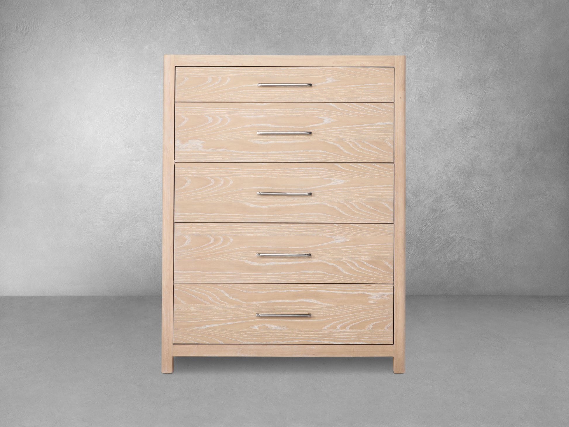 La commode et le chiffonnier Avalon incarnent un luxe décontracté, alliant une présence à la fois affirmée et raffinée. Fabriqués en bois d'hévéa certifié FSC et en placage de chêne blanc, leur finition sablée révèle le veinage naturel du bois et une patine organique, légèrement délavée par le soleil. Les tiroirs à fermeture douce, judicieusement intégrés, offrent une fonctionnalité discrète et élégante sans nuire à la modernité et à la pureté des lignes. Chaleureuse, légère et d'une élégance intemporelle, la collection Avalon apporte une sérénité côtière raffinée à la chambre tout en offrant un espace de rangement véritablement fonctionnel.