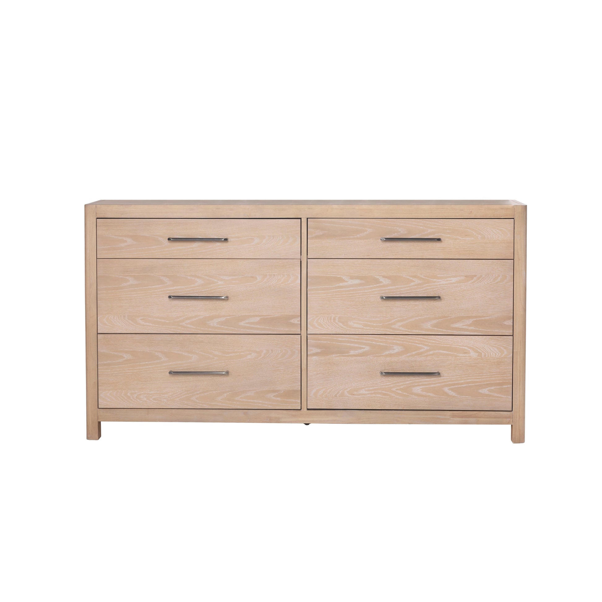 La commode et le chiffonnier Avalon incarnent un luxe décontracté, alliant une présence à la fois affirmée et raffinée. Fabriqués en bois d'hévéa certifié FSC et en placage de chêne blanc, leur finition sablée révèle le veinage naturel du bois et une patine organique, légèrement délavée par le soleil. Les tiroirs à fermeture douce, judicieusement intégrés, offrent une fonctionnalité discrète et élégante sans nuire à la modernité et à la pureté des lignes. Chaleureuse, légère et d'une élégance intemporelle, la collection Avalon apporte une sérénité côtière raffinée à la chambre tout en offrant un espace de rangement véritablement fonctionnel.
