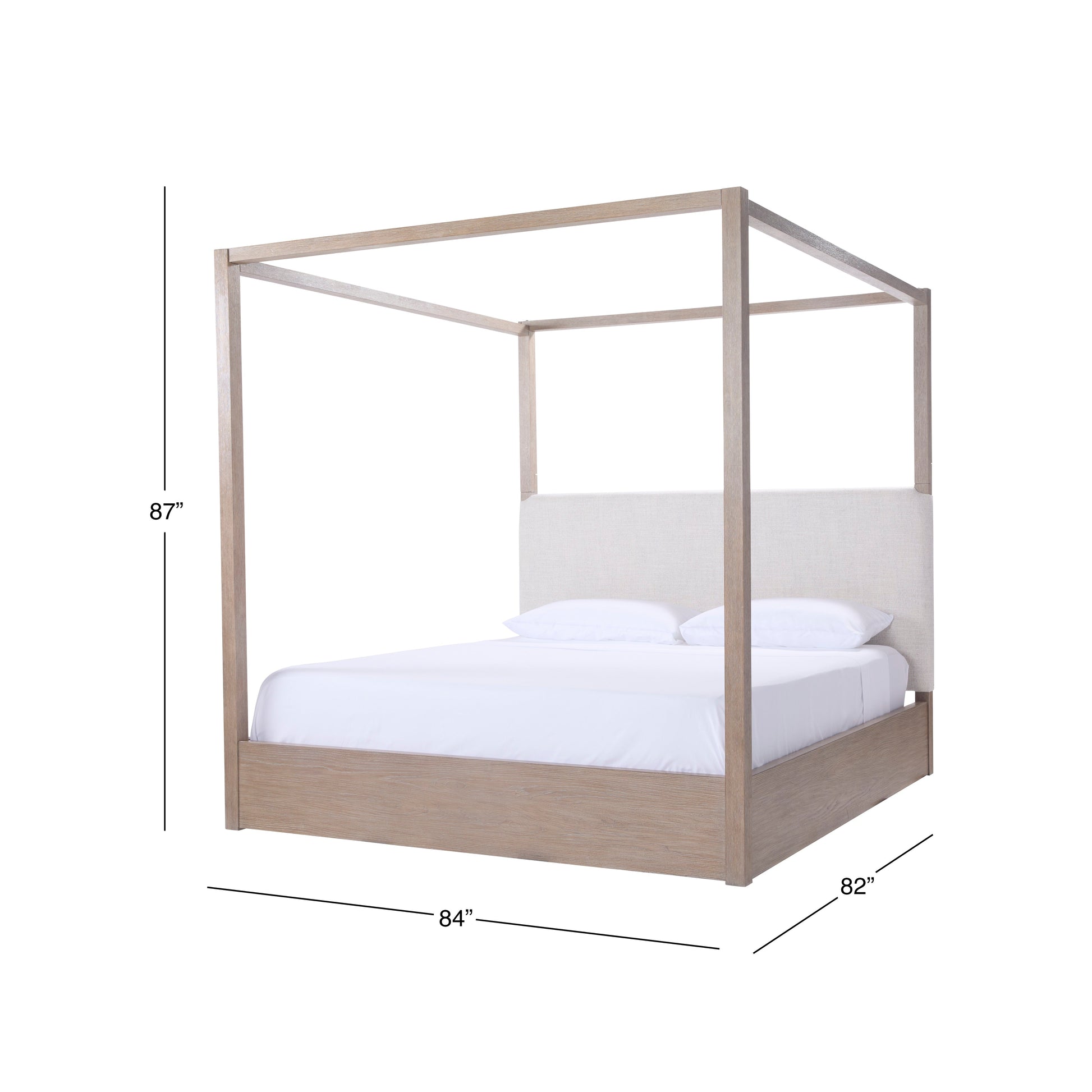 Le lit à baldaquin Bronte apporte une sérénité moderne et naturelle à la chambre grâce à sa silhouette sculpturale et à ses matériaux délicatement superposés. Fabriqué en bois d'hévéa massif et en placage de chêne, son cadre arbore une finition gris chaud aux multiples nuances qui met en valeur le grain organique du bois avec profondeur et chaleur. Une tête de lit capitonnée en polyester texturé haute performance ajoute une touche de douceur discrète à la structure du baldaquin, créant ainsi un point focal à la fois saisissant et apaisant. Aérien, ancré et d'une élégance naturelle, le lit Bronte invite à la détente, propice à des matins paisibles et à une vie consciente.