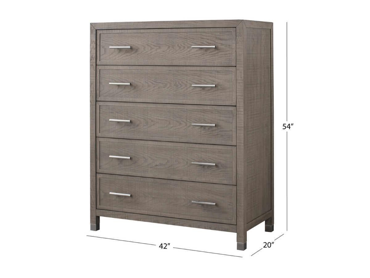Commode Bacara Modern Classic en bois brossé à 5 tiroirs, 107 cm (42 po) - Gris