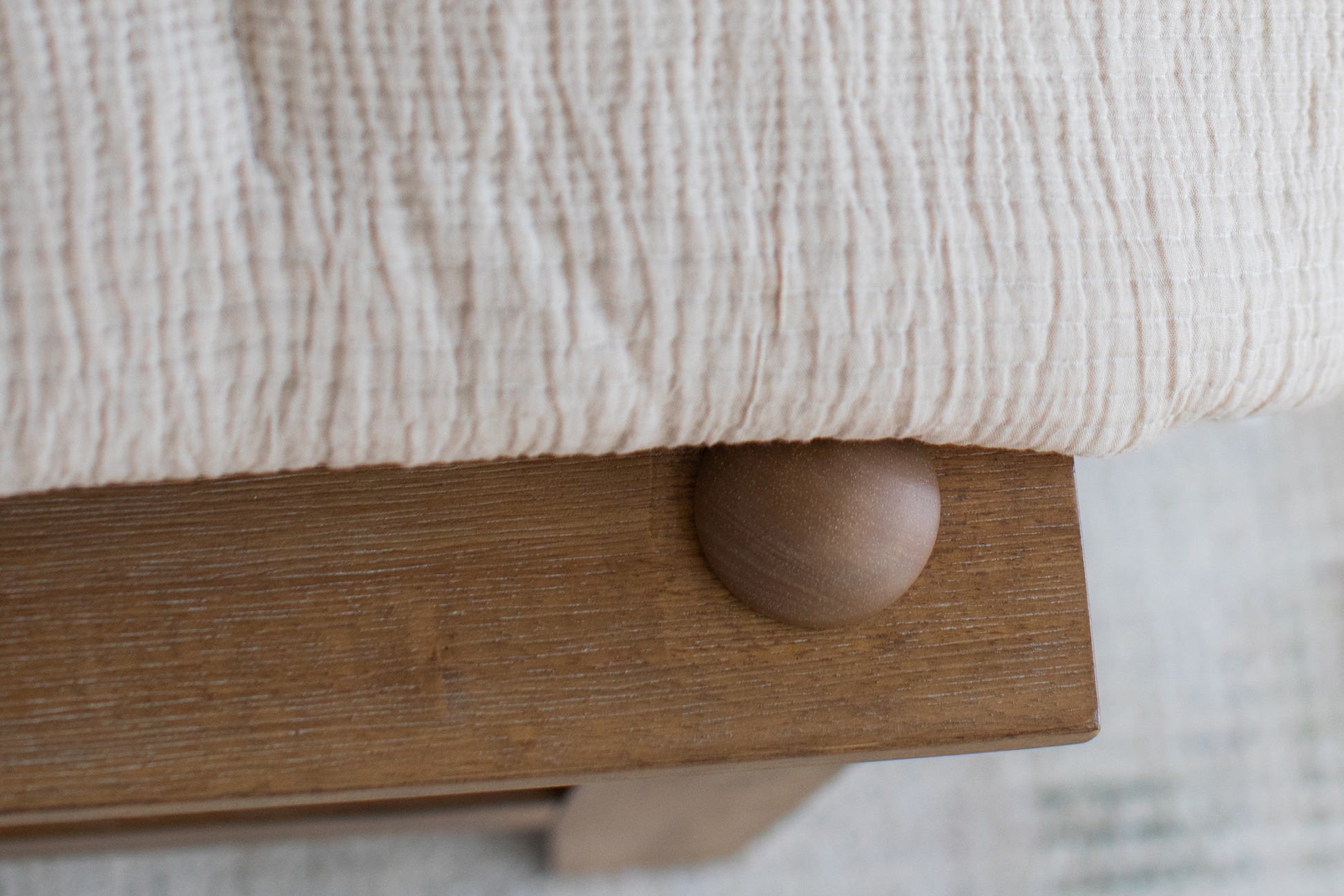 La chambre Ren, au design soigneusement pensé, capture la chaleur du mobilier vintage tout en y insufflant une touche de modernité et de fonctionnalité. Fabriquée en bois d'hévéa massif séché au four, certifié FSC® et issu de forêts gérées durablement pour le bien de l'environnement et le bien-être social, la collection Ren est conçue avec expertise pour une durabilité et une stabilité optimales. Un placage en bouleau, finition blond naturel, apporte une note chaleureuse à l'ensemble. La finition Sherwin Williams, reconnue pour sa fiabilité, sublime la beauté naturelle du bois et le protège des intempéries.