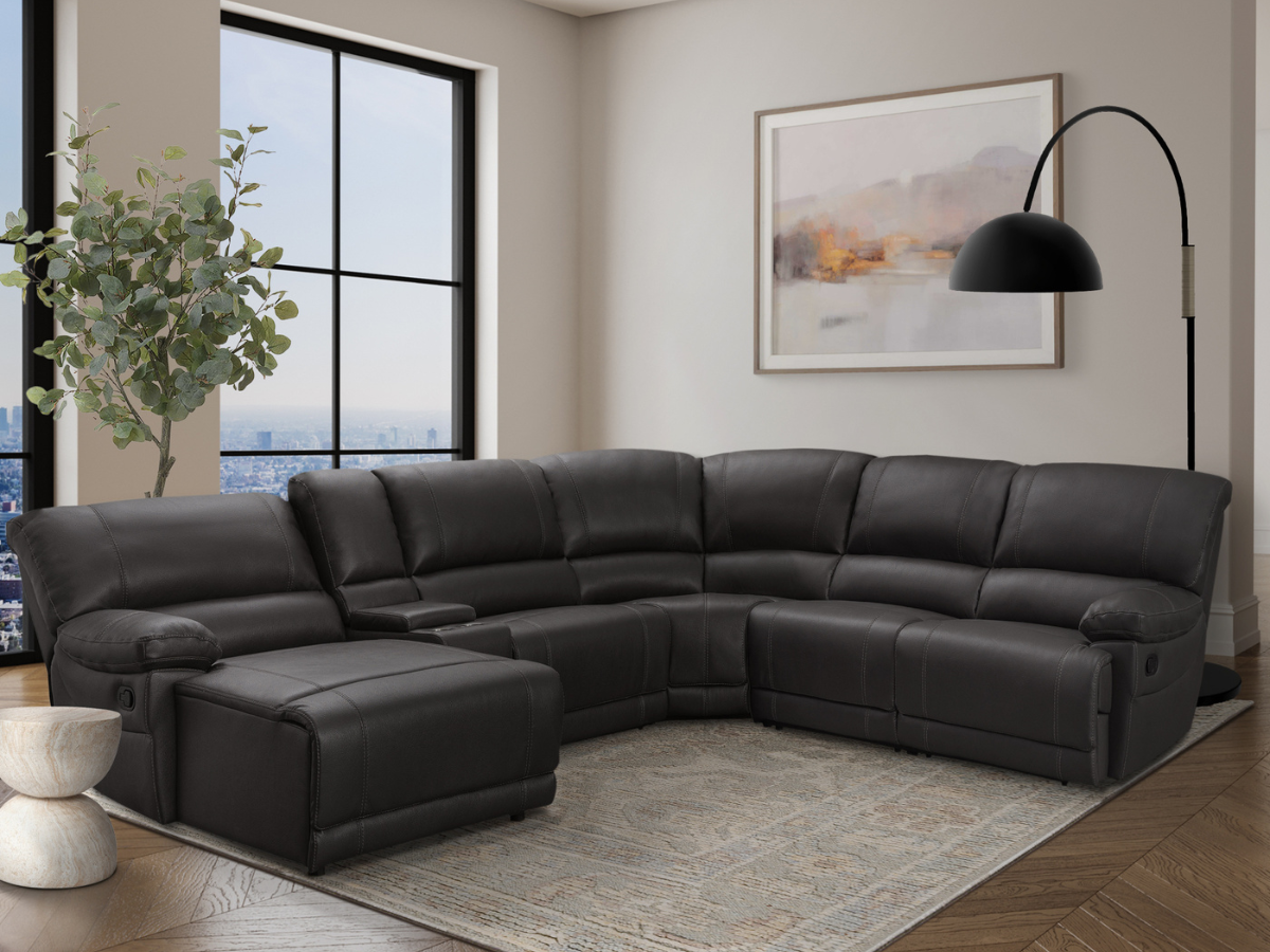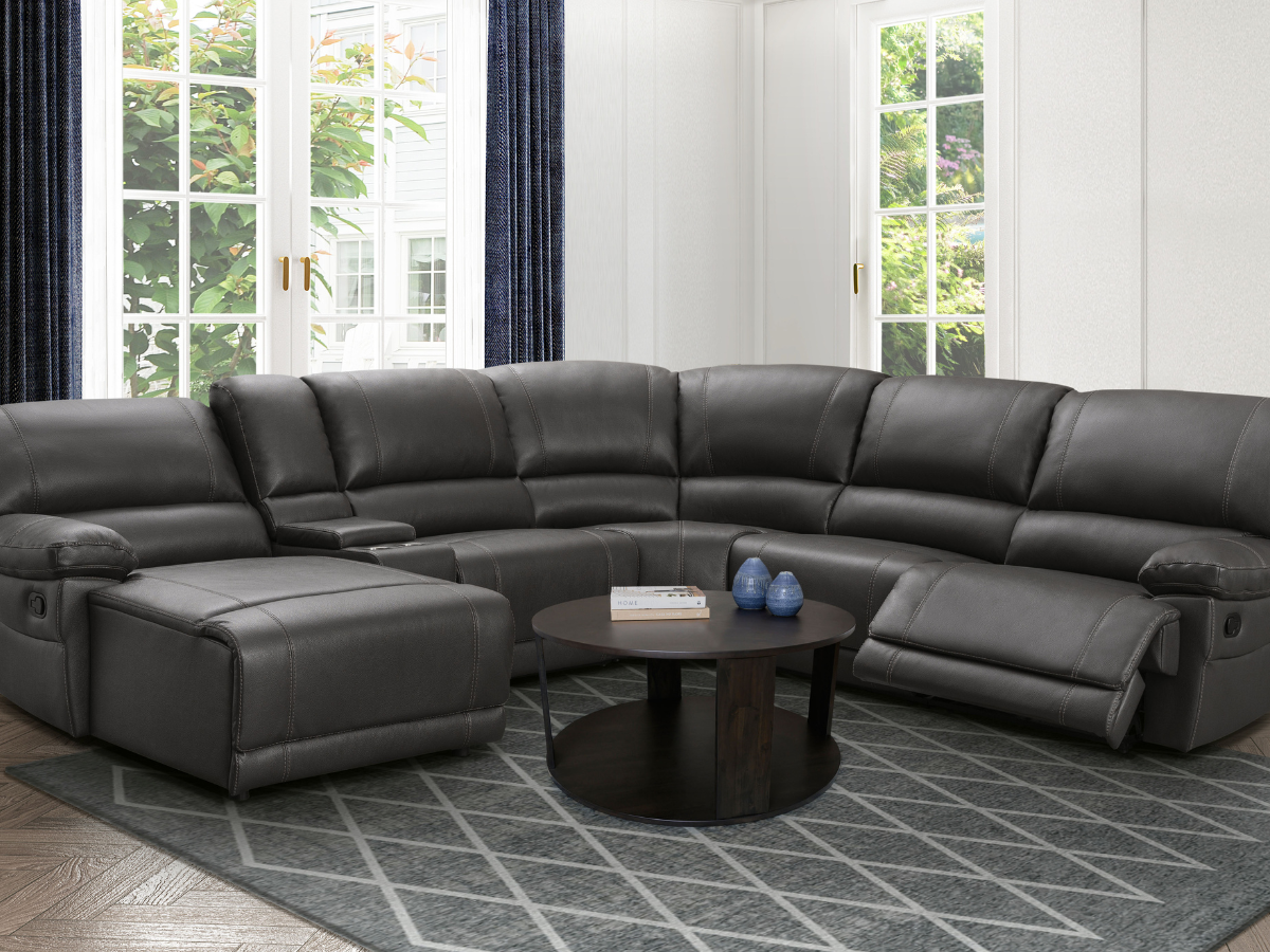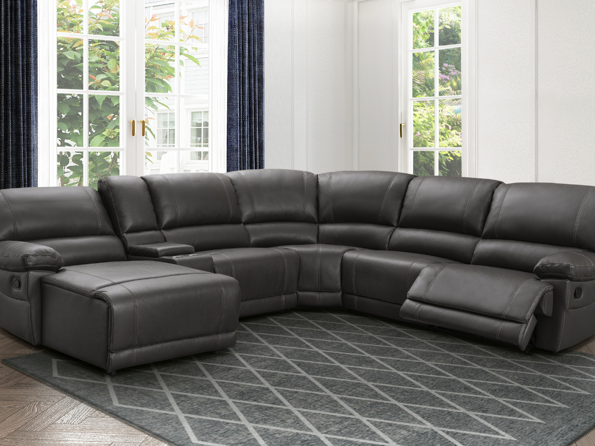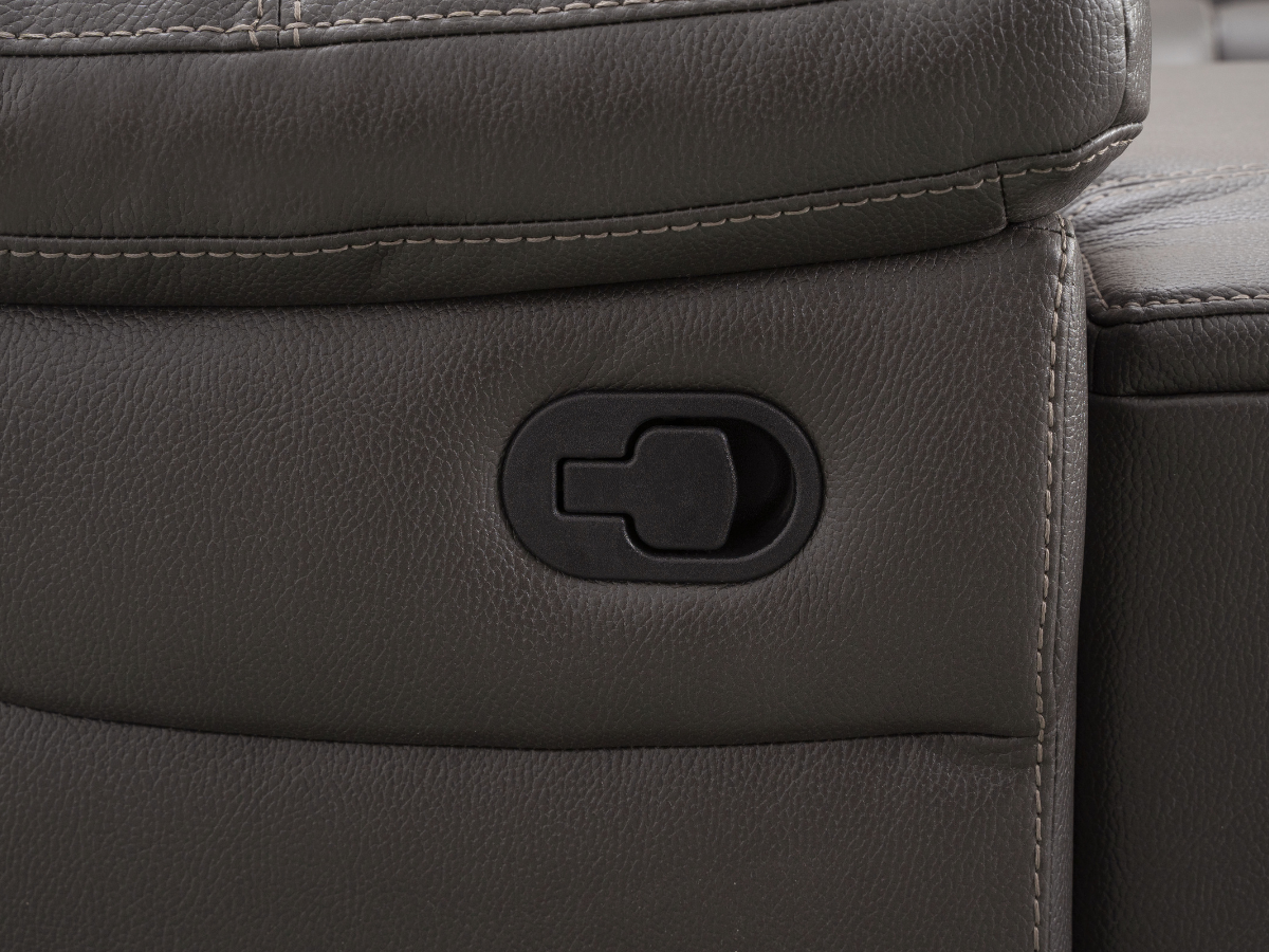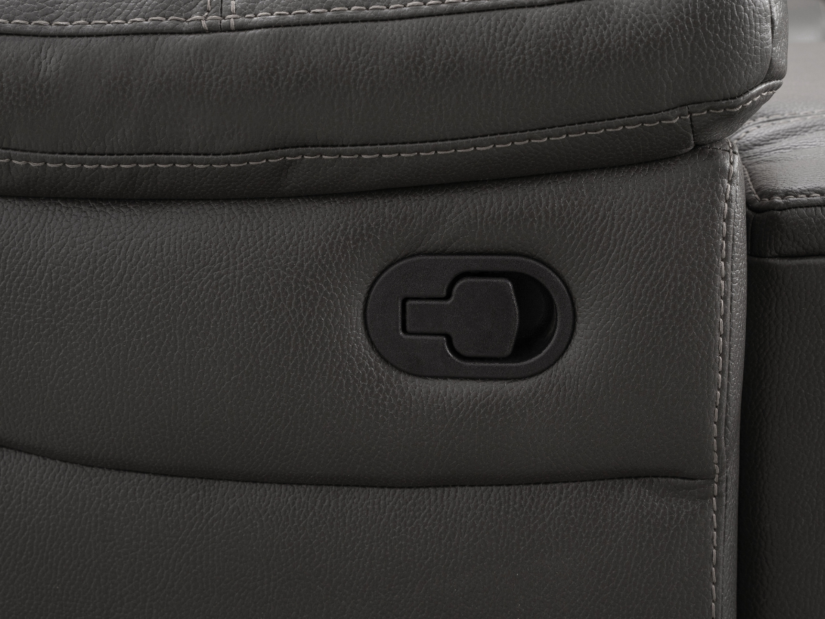 Aménagez un grand salon avec le canapé d'angle inclinable manuel Cooper. Ses coussins en mousse confortable offrent un confort optimal, tandis que ses porte-gobelets argentés et son coffre de rangement en plastique apportent une fonctionnalité appréciable. Ce canapé d'angle est doté de trois fauteuils inclinables pour que toute la famille puisse se détendre confortablement !