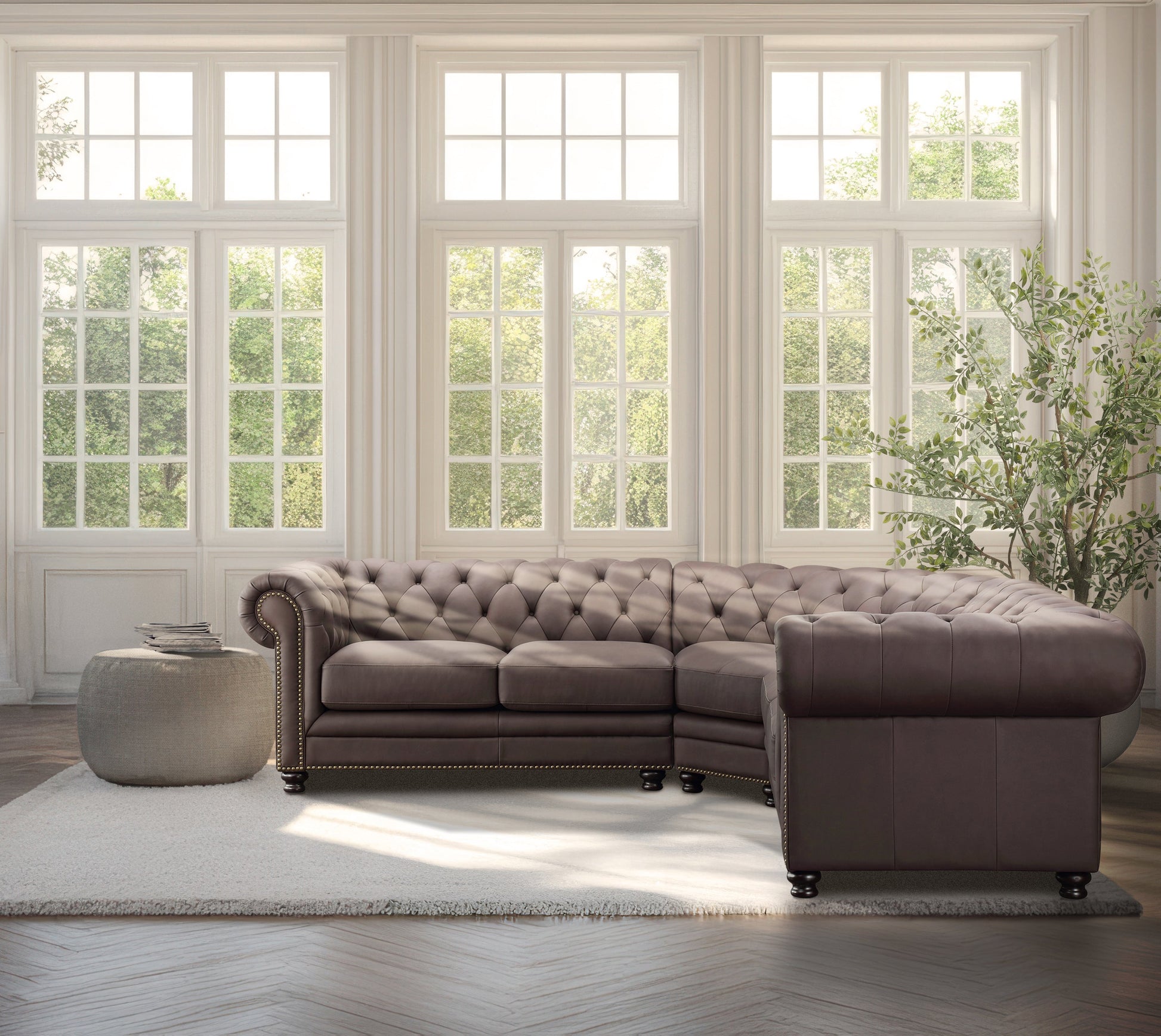 Canapé d'angle Chesterfield en cuir Culver 3 pièces, marron