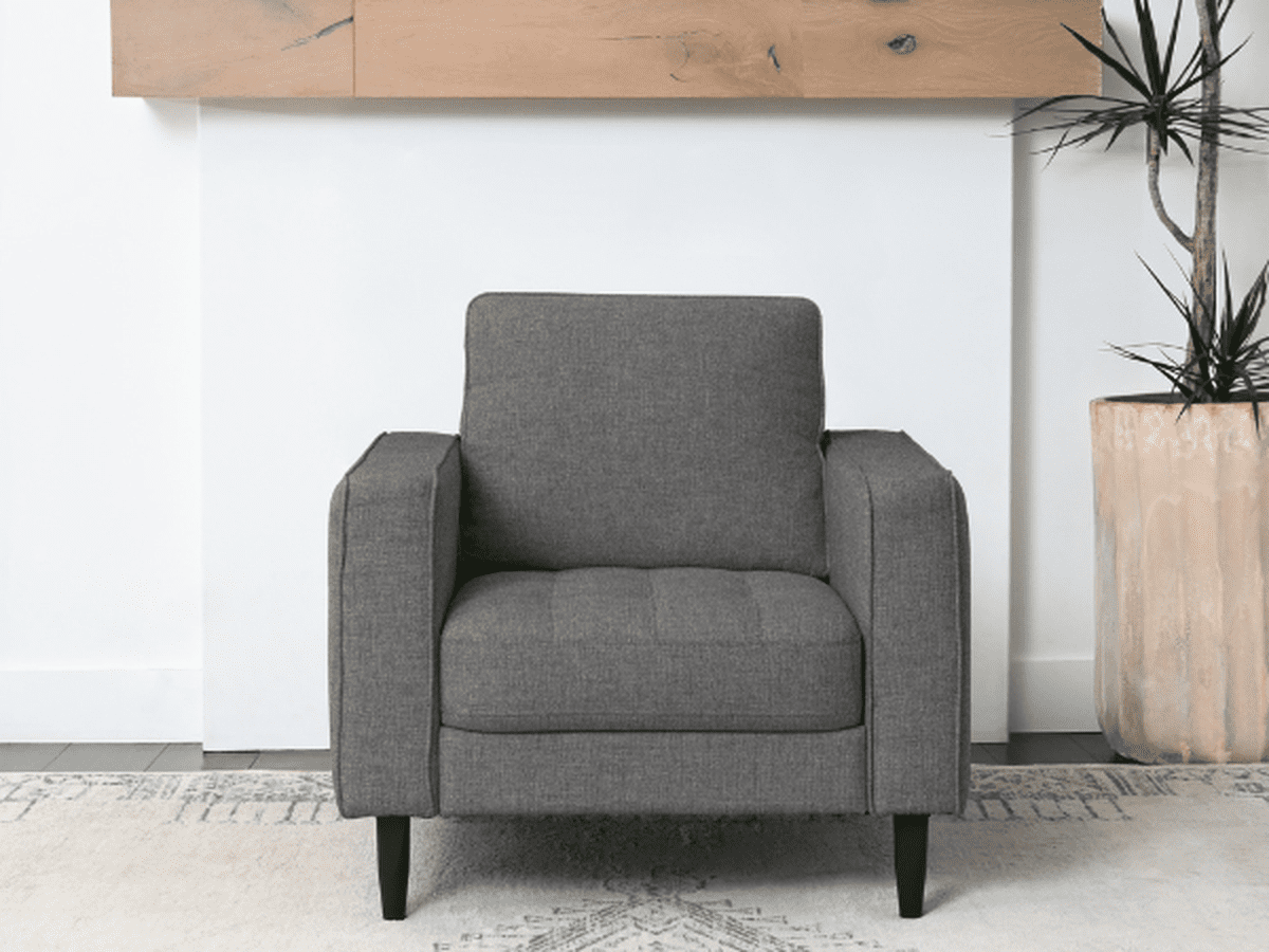Le fauteuil Holloway allie style et confort exceptionnel, idéal pour compléter un salon élégant ou optimiser l'espace dans les pièces compactes. Avec ses éléments de design modernes et son revêtement en polyester doux, il reflète une recherche de polyvalence à travers une esthétique intemporelle. Un coussin d'assise moelleux, garni de mousse, s'intègre parfaitement à une structure linéaire aux accoudoirs droits, tandis qu'un coussin de dossier amovible offre un confort tout aussi exceptionnel. Le capitonnage réalisé à la main apporte une touche de texture au coussin d'assise. Sa structure en bois massif lui confère une robustesse remarquable, et ses pieds fuselés en bois noir rehaussent son design charmant.