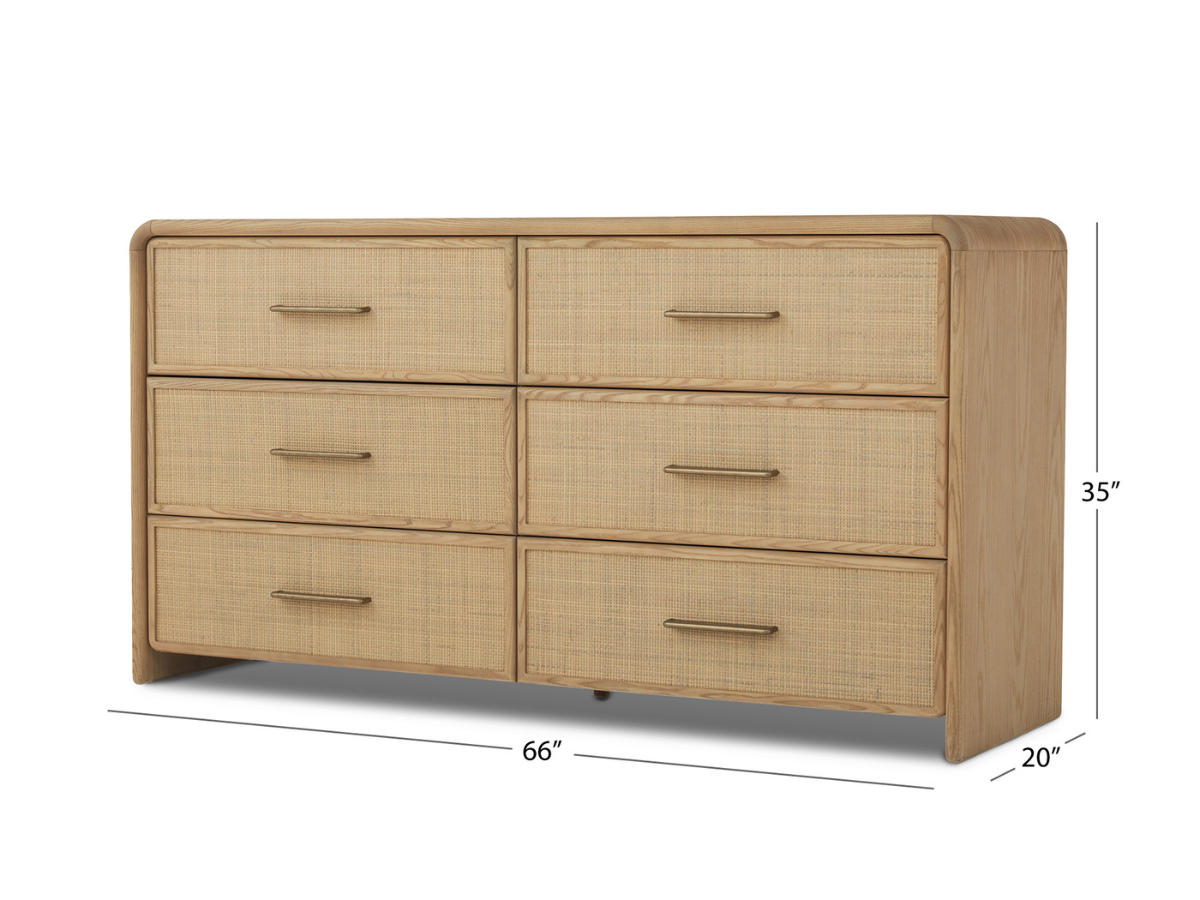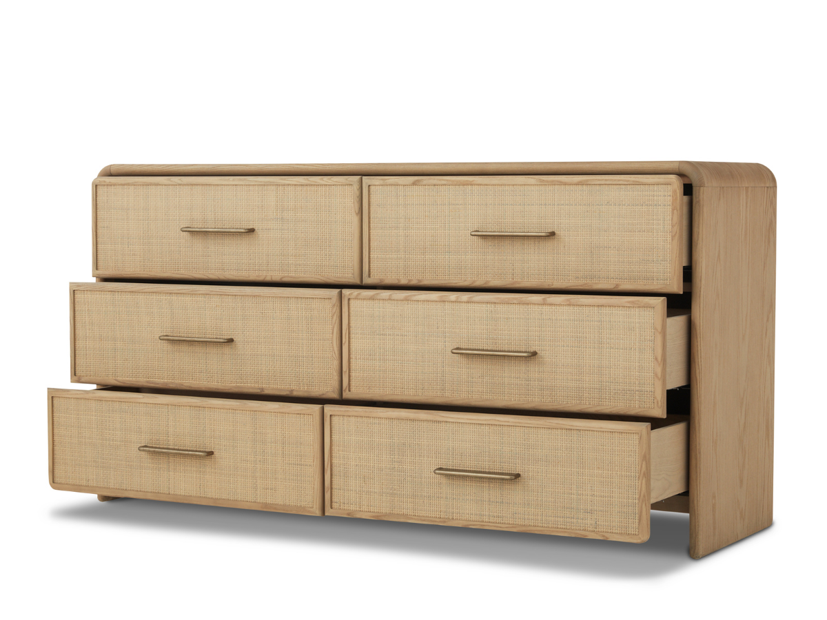 Commode Pauline à 6 tiroirs en chêne et rotin naturel JoJo Fletcher - Blonde