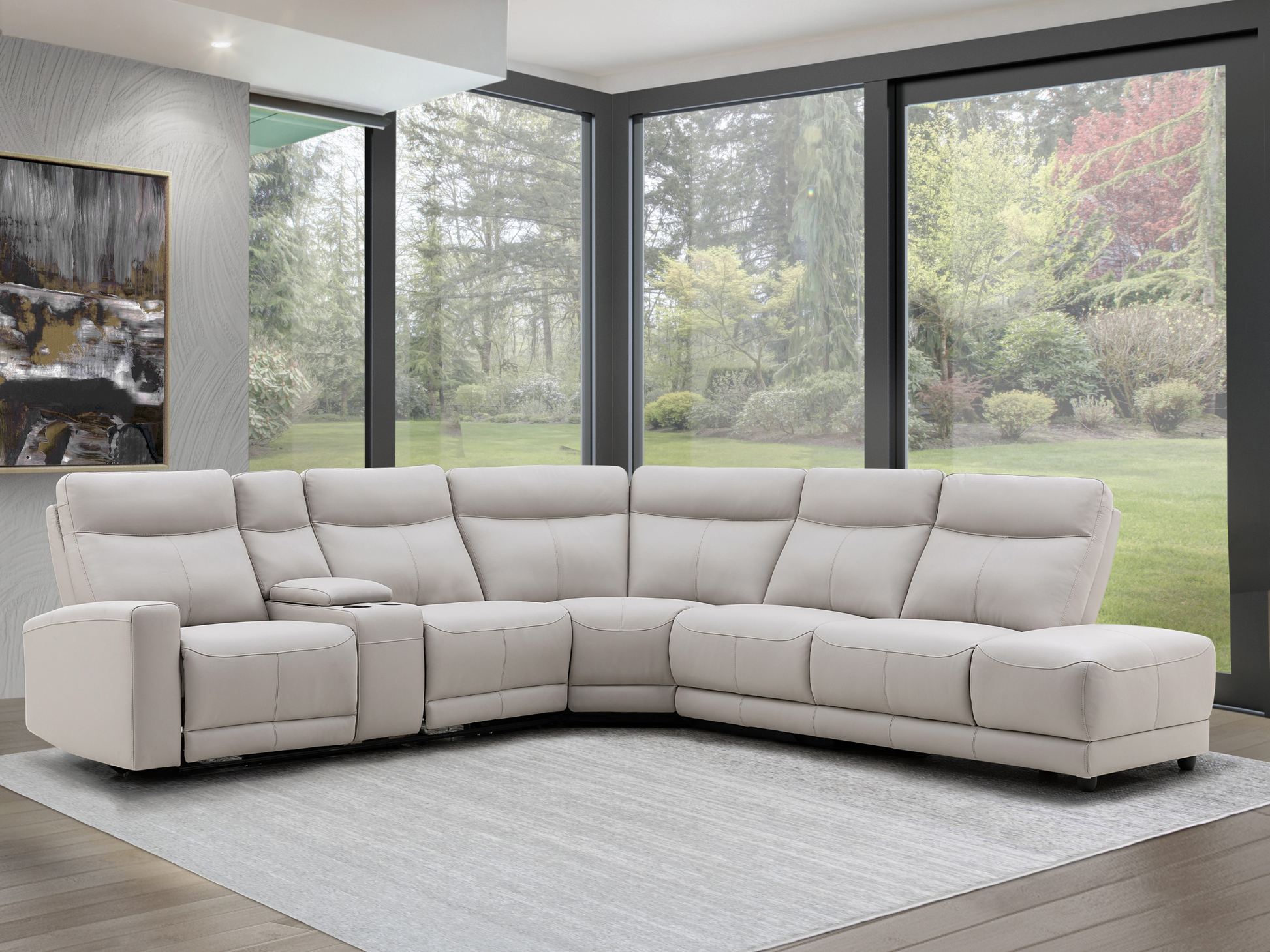 Canapé d'angle en cuir inclinable électrique Kimmel avec appuie-tête électriques - Gris