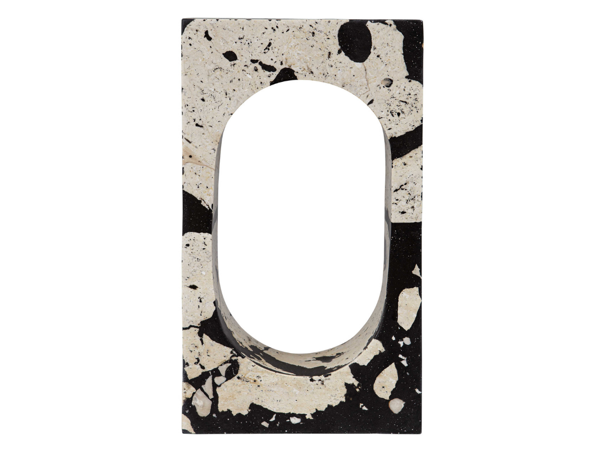 Inspirée par la pureté des lignes et l'audace de l'art moderne, cette sculpture est réalisée à la main en pierre calcaire blanche naturelle rehaussée de touches de noir. Vendue à l'unité.