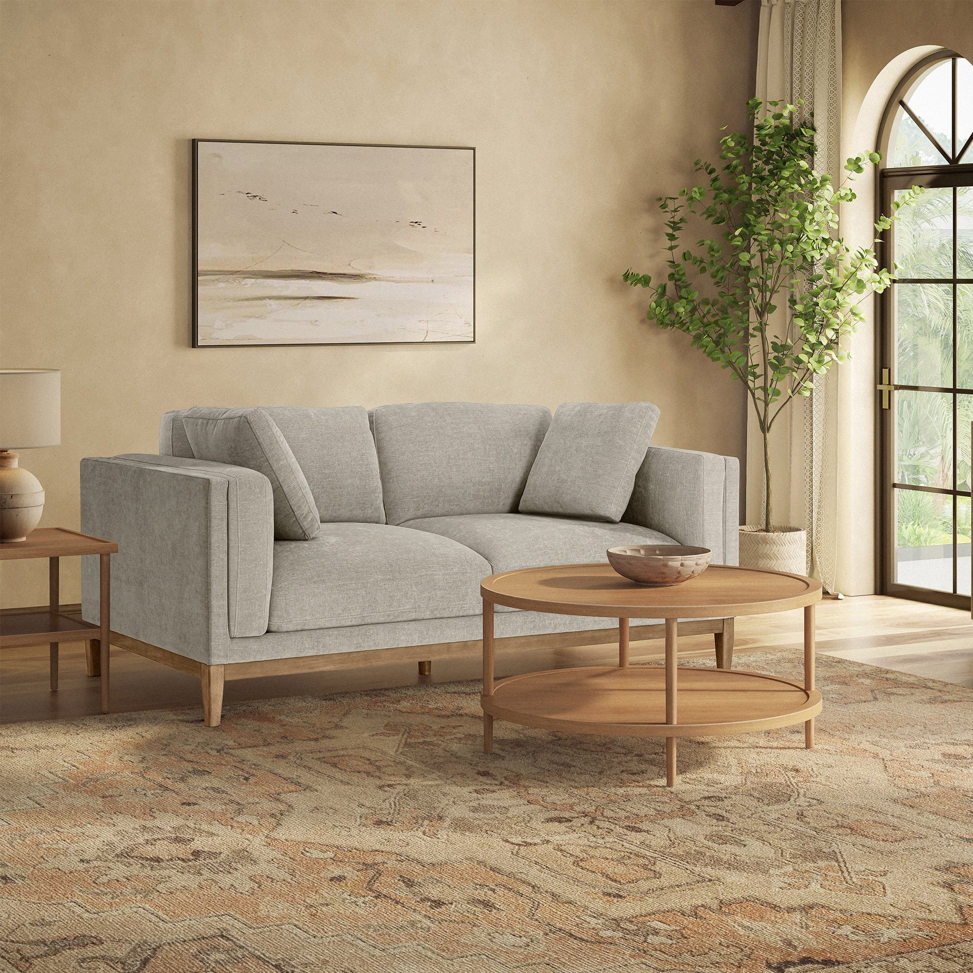 Canapé en tissu Renee avec base en bois, gris