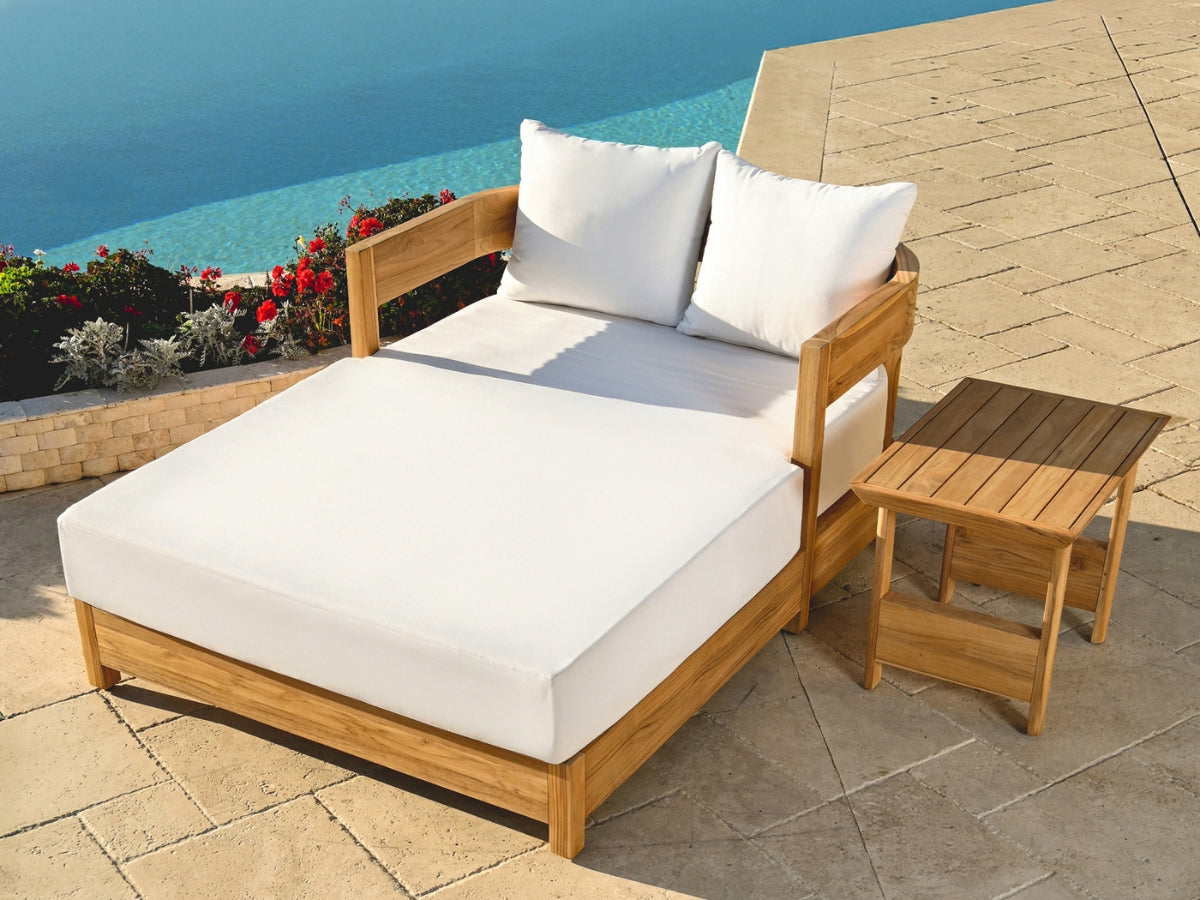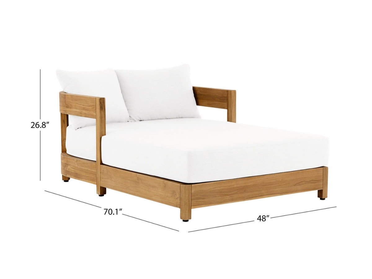 Sublimez votre espace extérieur avec le lit de jour Santino® ! Fabriqué avec une structure en teck certifié FSC et un revêtement 100 % acrylique Sunbrella, ce lit de jour de style bord de mer est à la fois élégant et résistant. Son rembourrage en mousse haute densité offre un confort optimal pour se détendre toute la journée. Choisissez parmi les coloris Granite ou Blanc.