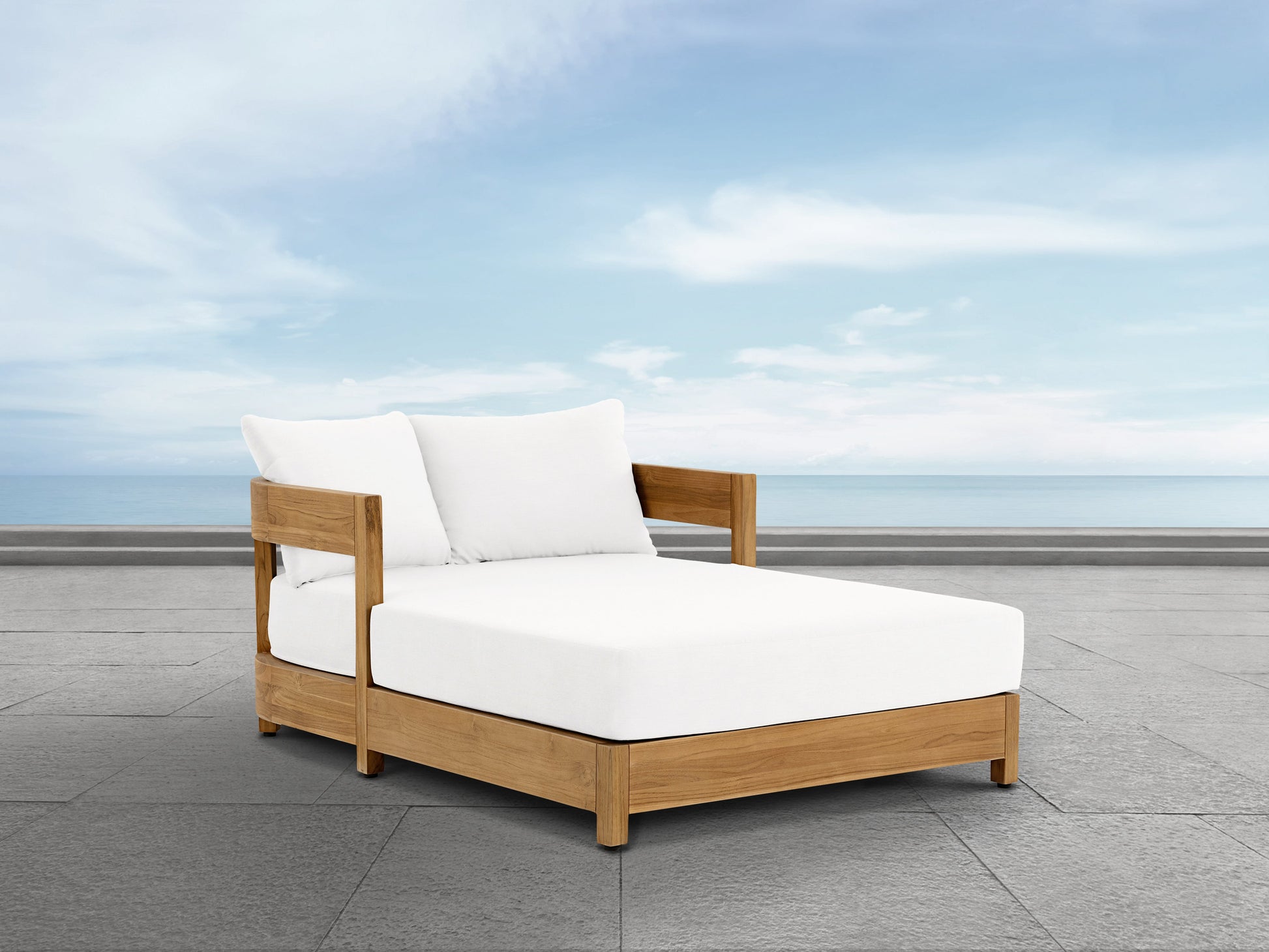 Lit de jour d'extérieur Santino® - Tissu blanc et structure en teck