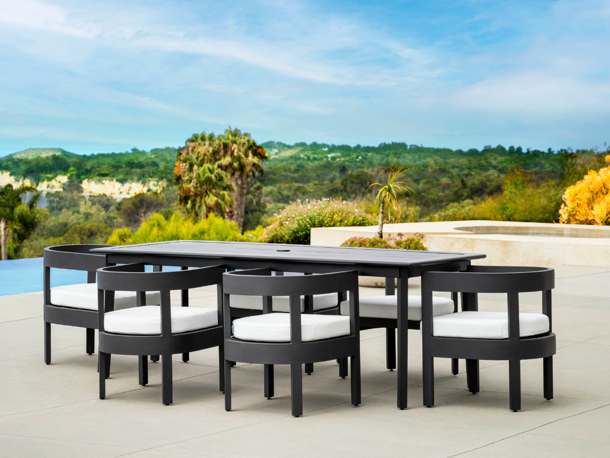 Créez un havre de paix élégant dans votre espace extérieur avec l'ensemble de salle à manger Santino® 7 pièces. Spacieux et conçu pour un confort optimal, le mobilier Santino® est l'atout charme de votre jardin. Offrant une qualité durable et un style raffiné, Santino® se distingue par ses coussins recouverts de Sunbrella et sa structure en aluminium thermolaqué. L'ensemble comprend six (6) chaises et une (1) table de salle à manger, et arbore une beauté intemporelle dont vous serez fier toute l'année.
