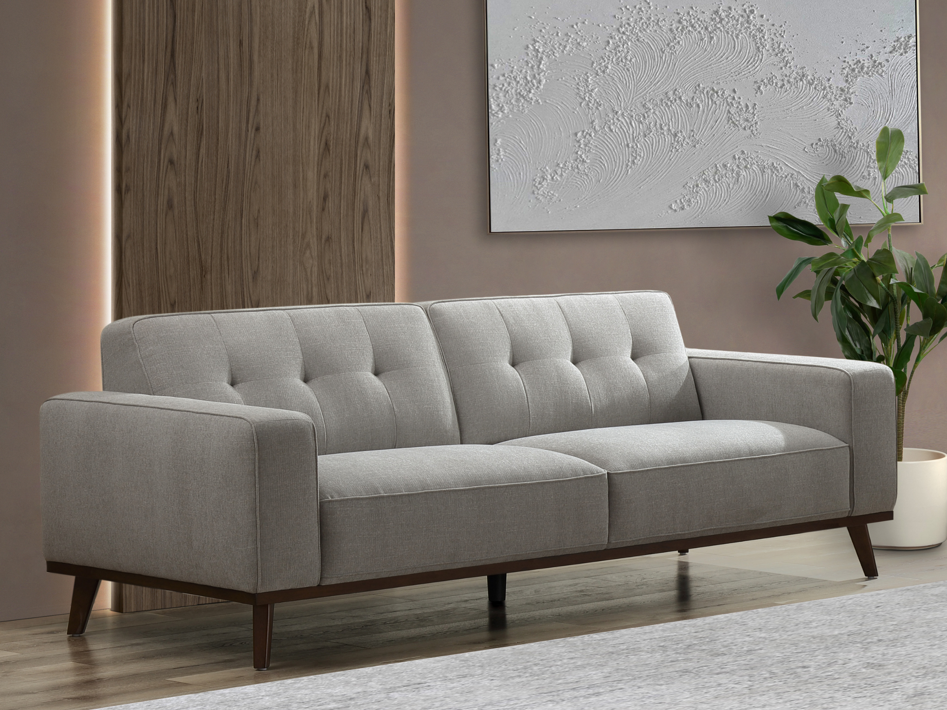 Canapé rembourré Vicenza style milieu du siècle - Gris