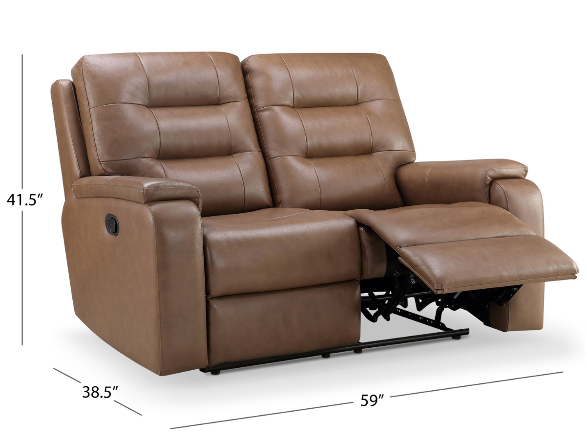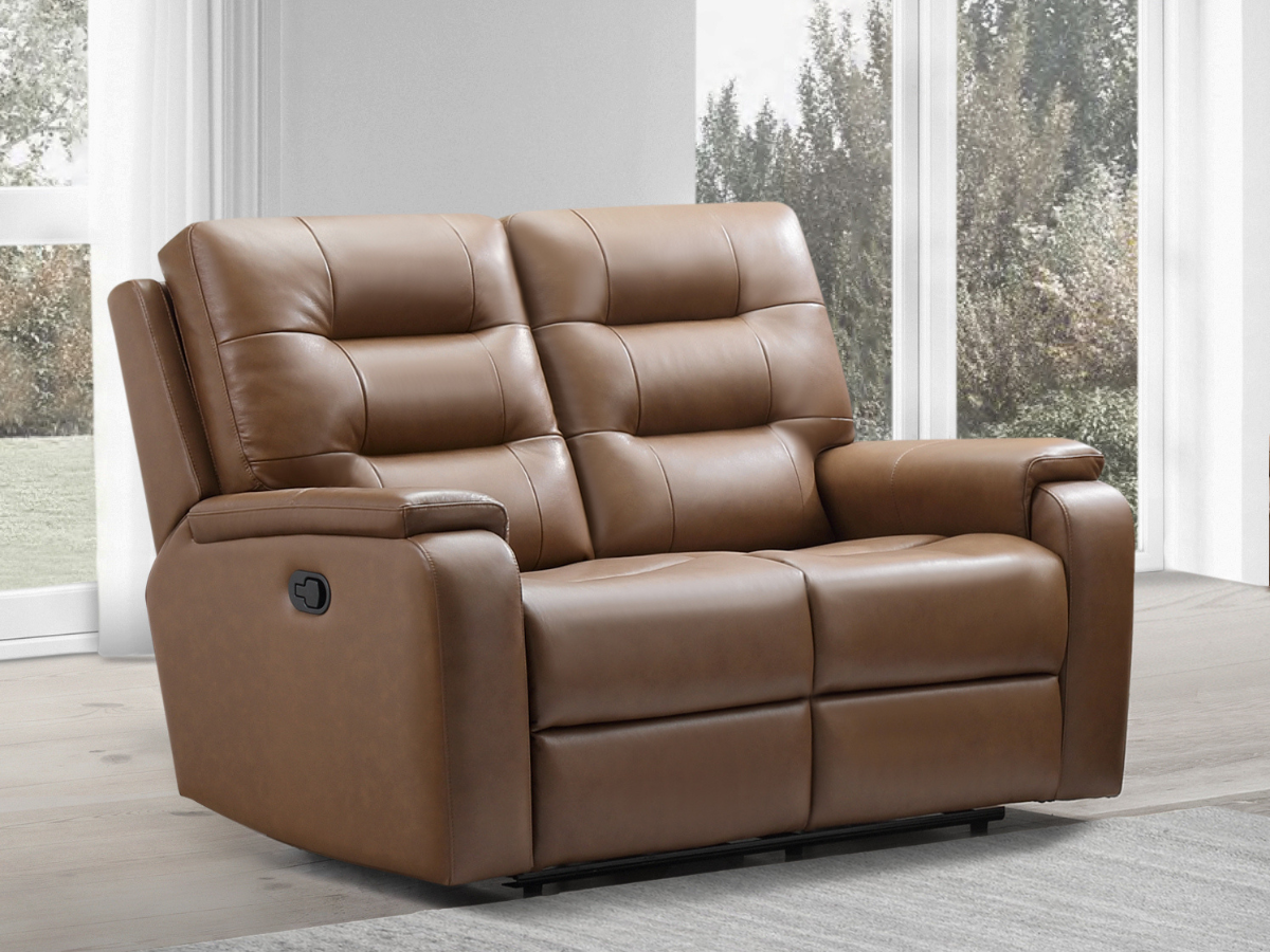 Canapé inclinable manuel Waylen en cuir pleine fleur - Marron