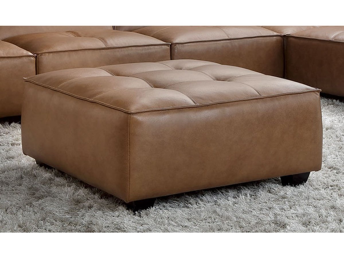 Pouf Wallingford en cuir pleine fleur, couleur camel